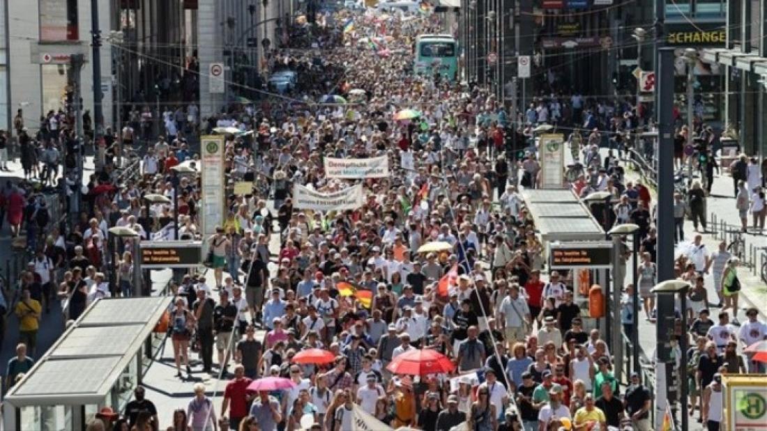 Με συνθήματα όπως «Εμείς είμαστε το δεύτερο κύμα» και «Αντίσταση», δεκάδες χιλιάδες αρνητές των περιορισμών που επιβάλλονται για την αποτροπή εξάπλωσης της πανδημίας, εκφράζουν την αντίθεσή τους στις σχετικές αποφάσεις της πολιτείας, ενώ υποστηρίζουν ότι «η μεγαλύτερη θεωρία συνωμοσίας είναι αυτή της πανδημίας».