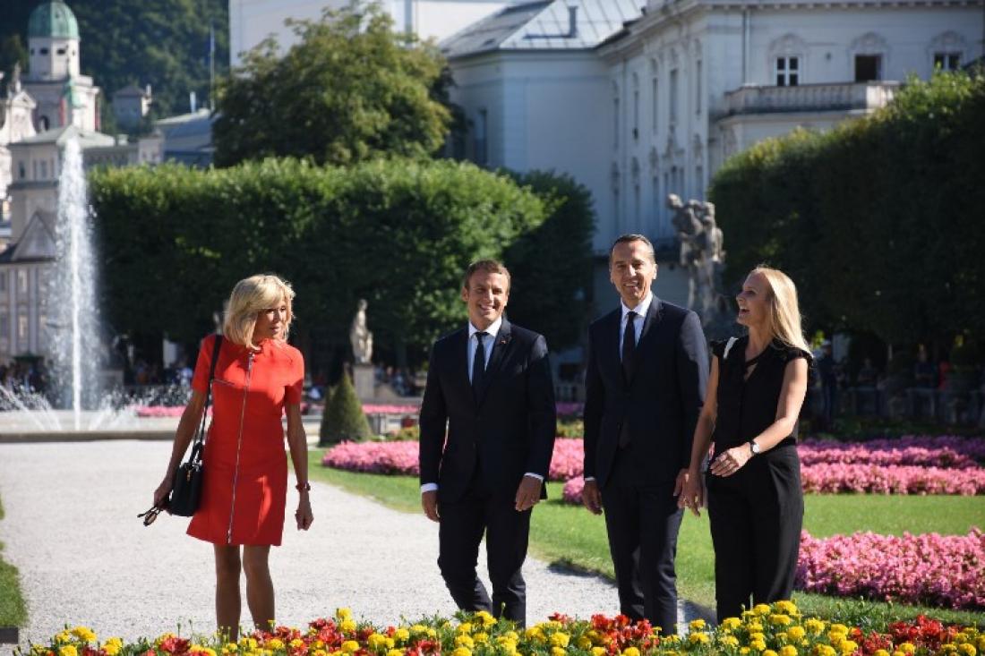 Η Μπριζίτ φορούσε μαύρα γυαλιά ηλίου και μια μαύρα τσάντα στον ώμο, ενώ κρατούσε τα γυαλιά της στο χέρι την ώρα που ενώ με τον σύζυγό της συναντήθηκαν με τον Καγκελάριο της Αυστρίας και την γυναίκα του.