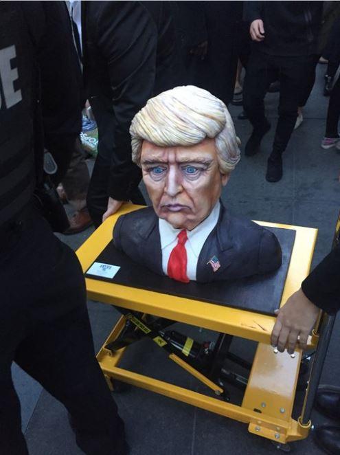 Μια τεράστια τούρτα με το πρόσωπο του Ντόναλντ Τραμπ μεταφέρθηκε στο Trump Tower από όπου θα παρακολουθήσει τα αποτελέσματα.