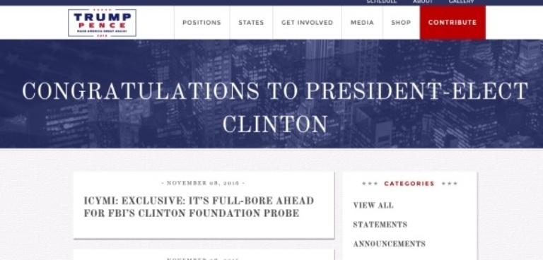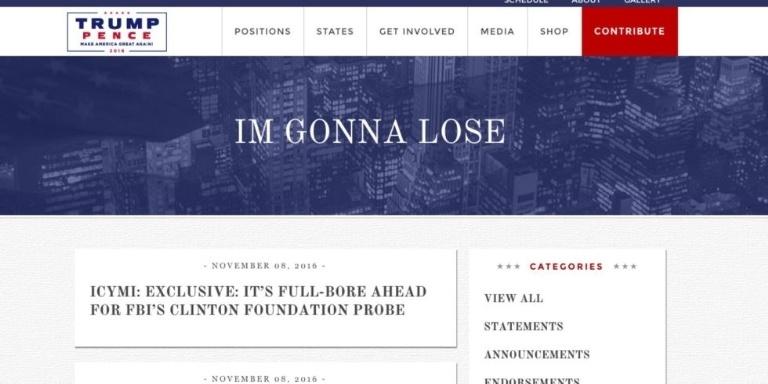 "Θα χάσω" και "Συγχαρητήρια στην νικήτρια, Χίλαρι Κλίντον" ήταν ορισμένες από τις ατάκες που εθεάθησαν λίγες ώρες πριν το συνειδητοποιήσουν και μπλοκάρουν την σελίδα άρον άρον, η οποία παραμένει ανενεργή μέχρι και αυτήν την ώρα (4:30 ώρα Ελλάδος).