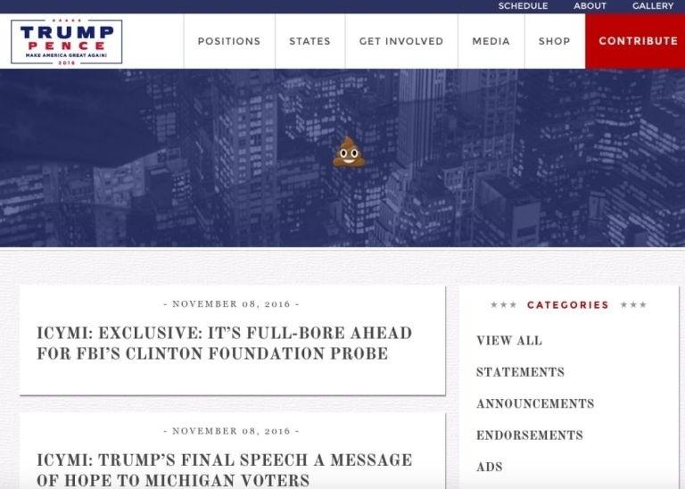 Τραμπ...ολίνο οι παλμοί του Ρεπουμπλικανού υποψήφιου! Οι χάκερς που κατάφεραν να εισβάλλουν στην ιστοσελίδα του donaldtrump.com φαίνεται ότι προκάλεσαν ταραχή στον Ντόναλντ Τραμπ φέρνοντας τα πάνω...κάτω στο επίσημο site.