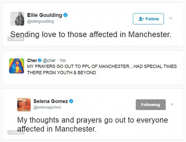 Έκρηξη στο Μάντσεστερ: Συγκλονισμένοι οι καλλιτέχνες παγκοσμίως - Δείτε τα μηνύματα αλληλεγγύης (ΦΩΤΟ)