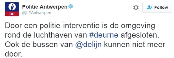 Έληξε ο συναγερμός στο αεροδρόμιο της Αμβέρσας με την κυκλοφορία να διεξάγεται κανονικά. Ο συναγερμός τέθηκε σε ισχύ μετά από ύποπτο αντικείμενο που βρέθηκε στο πάρκινγκ του αεροδρομίου της πόλης. Στο σημείο κατέφθασαν άμεσα οι πυροτεχνουργοί. Η περιοχή αποκλείστηκε σε περίμετρο 100 μέτρων και αφού έγιναν οι απαραίτητοι έλεγχοι, ομαλοποιήθηκε η κατάσταση, και το αεροδρόμιο δόθηκε και πάλι στην κυκλοφορία.