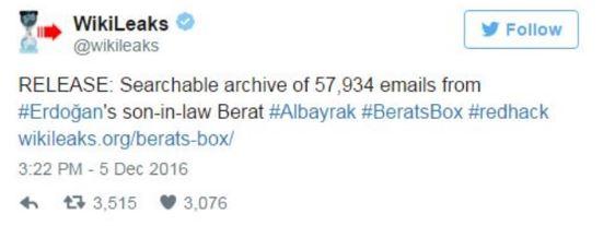 Τις διασυνδέσεις του γαμπρού του Ρετζέπ Ταγίπ Ερντογάν, Μπεράτ Αλμπαϊράκ, με εταιρεία που εμπλέκεται σε υποθέσεις εισαγωγής πετρελαίου στην Τουρκία από το ISIS αποκαλύπτουν χιλιάδες email που δόθηκαν στη δημοσιότητα από τον ιστότοπο Wikileaks.