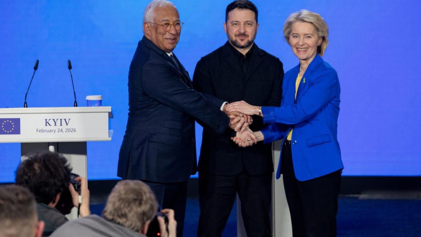 Με τη συμπλήρωση τεσσάρων ετών από τη ρωσική εισβολή, η ηγεσία της Ευρωπαϊκής Ένωσης έστειλε από το Κίεβο ένα ηχηρό μήνυμα διαρκούς στήριξης, συνδυάζοντάς το με νέες, απτές δεσμεύσεις.