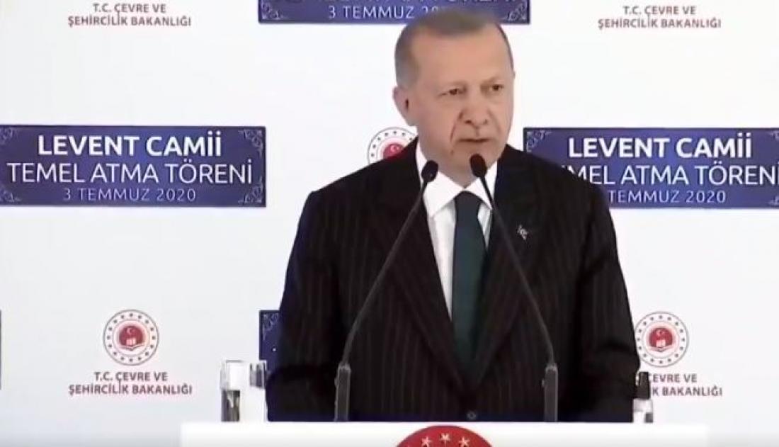Ο Τούρκος Πρόεδρος σήμερα παρέστη στη θελεμίωση ενός νέου τζαμιού στην περιοχή Λεβέντ όπου και ρωτήθηκε σχετικά με τις αντιδράσεις που έχουν προκύψει για την μετατροπή της Αγίας Σοφίας σε τζαμί.
