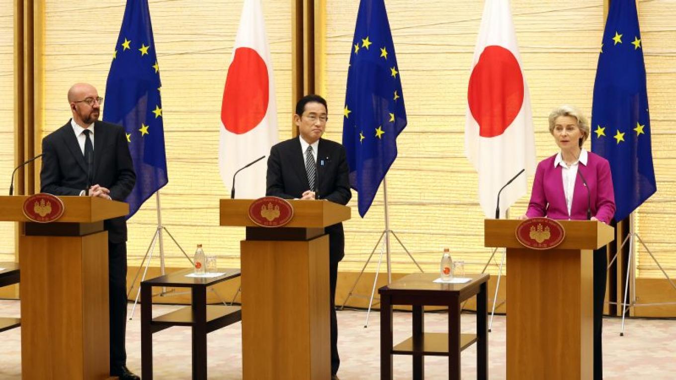 Οι δύο κορυφαίοι ευρωπαίοι αξιωματούχοι βρίσκονται σήμερα στο Τόκιο για τον ετήσιο κύκλο συνομιλιών Ιαπωνίας-ΕΕ, που διεξάγεται αυτή τη φορά μεσούσης της ρωσοουκρανικής σύρραξης και με φόντο τις αυξανόμενες ανησυχίες για τις στρατιωτικές φιλοδοξίες της Κίνας.