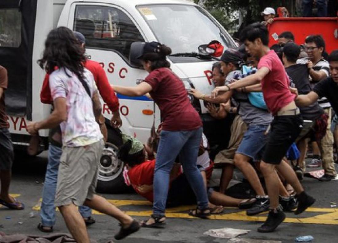 Η αστυνομία στις Φιλιππίνες έκανε σήμερα χρήση δακρυγόνων για να διαλύσει ένα πλήθος 1.000 ανθρώπων που διαδήλωναν έξω από την αμερικανική πρεσβεία στη Μανίλα, ενώ εικόνες που μεταδόθηκαν από τηλεοπτικά δίκτυα έδειξαν ένα φορτηγάκι της αστυνομίας να πέφτει πάνω στους διαδηλωτές.