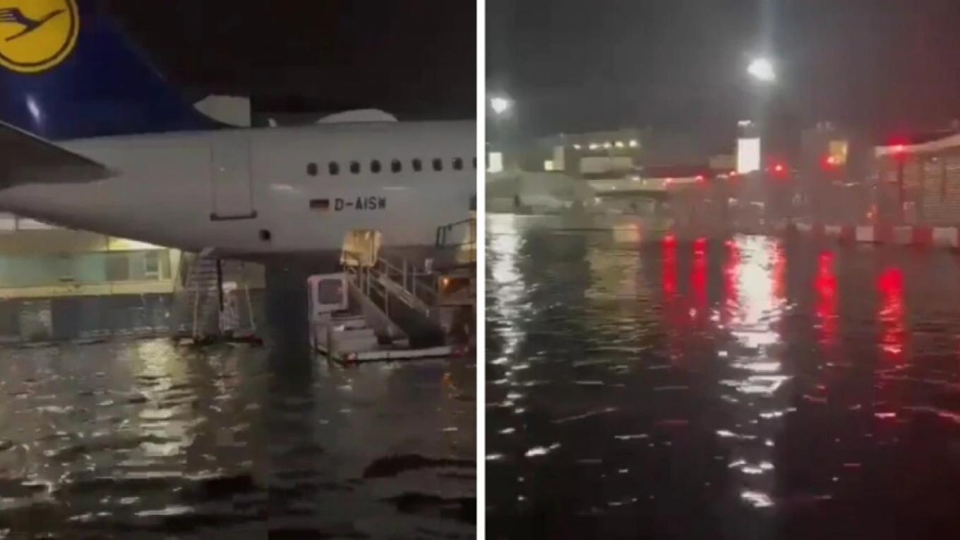 Αεροσκάφη ήταν ακινητοποιημένα γύρω από το κτήριο καθώς το νερό έφτανε το μισό μέτρο. Σχεδόν αδύνατη η προσέγγιση με τα αυτοκίνητα ενώ προβληματική ήταν η κατάσταση και στους εσωτερικούς χώρους.