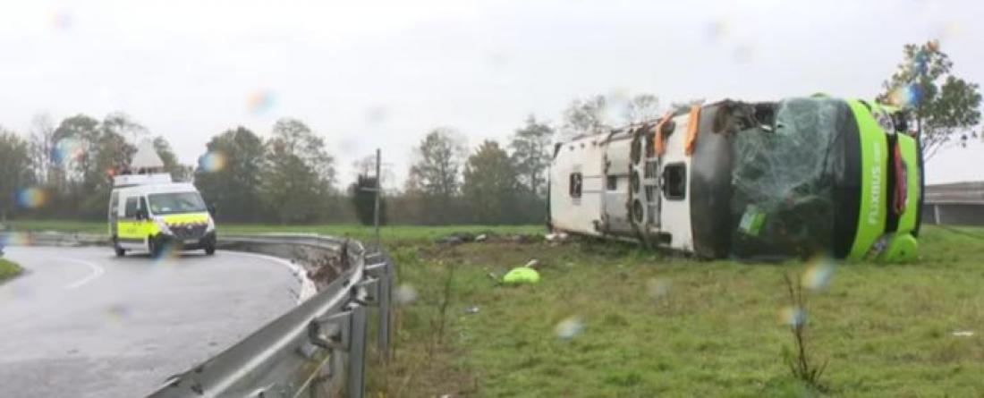 Όπως ανέφεραν οι τοπικές Αρχές, λεωφορείο της εταιρείας Flixbus, που εκτελούσε το δρομολόγιο από το Παρίσι στο Λονδίνο, ξέφυγε από την πορεία του και ανατράπηκε, γι’ άγνωστους μέχρι στιγμής λόγους, στη βόρεια Γαλλία.