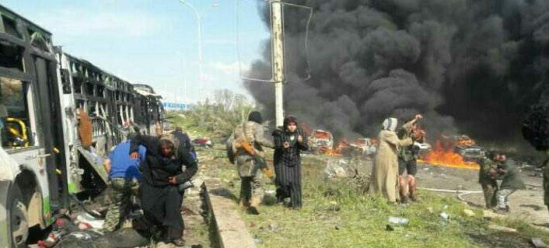 Σύμφωνα με ΜΜΕ που υποστηρίζουν την συριακή κυβέρνηση, η αιματηρή έκρηξη που έπληξε κομβόι λεωφορείων που περίμεναν να εισέλθουν στο Χαλέπι, έγινε από βομβιστή αυτοκτονίας που πυροδότησε παγιδευμένο με εκρηκτικά αυτοκίνητο.