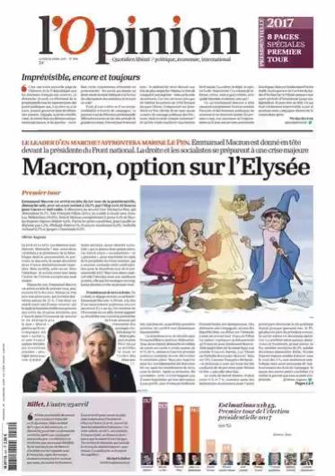 Και η «L' Opinion» υπέρ Μακρόν γράφοντας: «Μακρόν, η επιλογή για το Ελιζέ».