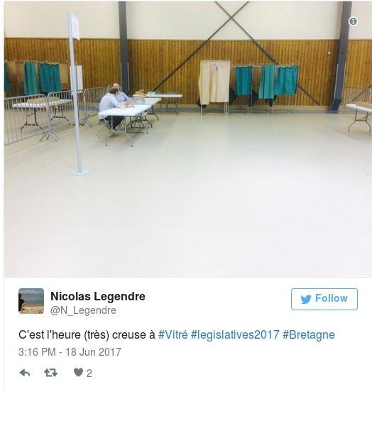 Το μεσημέρι, η συμμετοχή ανήλθε στο 17,75% καταγράφοντας σημαντική πτώση από το δεύτερο γύρο του 2012 και του 2007 (21,41% το 2012 και 22,89% το 2007) και από τον πρώτο γύρο (19 , 24%).
