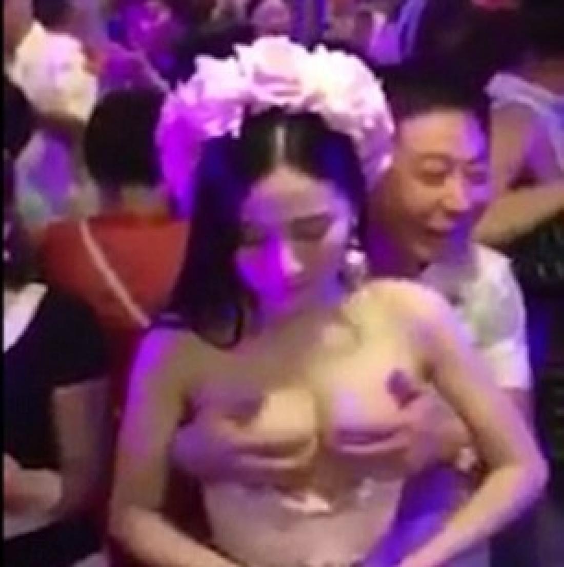 Το βίντεο τραβήχτηκε κάπου στη νότια Κίνα και δείχνει τους καλεσμένους να κάνουν ουρά και να πληρώνουν για να χαιδέψουν και να φιλήσουν το στήθος της νύφης στη διάρκεια της δεξίωσης γάμου.