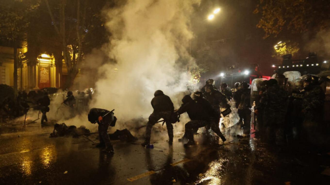Για δεύτερη συνεχόμενη νύχτα, οι δυνάμεις αποκατάστασης της τάξης χρησιμοποίησαν δακρυγόνα, σπρέι πιπεριού και νερό υπό πίεση για να διαλύσουν μια συγκέντρωση διαμαρτυρίας για την απόφαση της κυβέρνησης της Γεωργίας να αναβάλει μέχρι το 2028 τις ενταξιακές διαπραγματεύσεις με την ΕΕ.