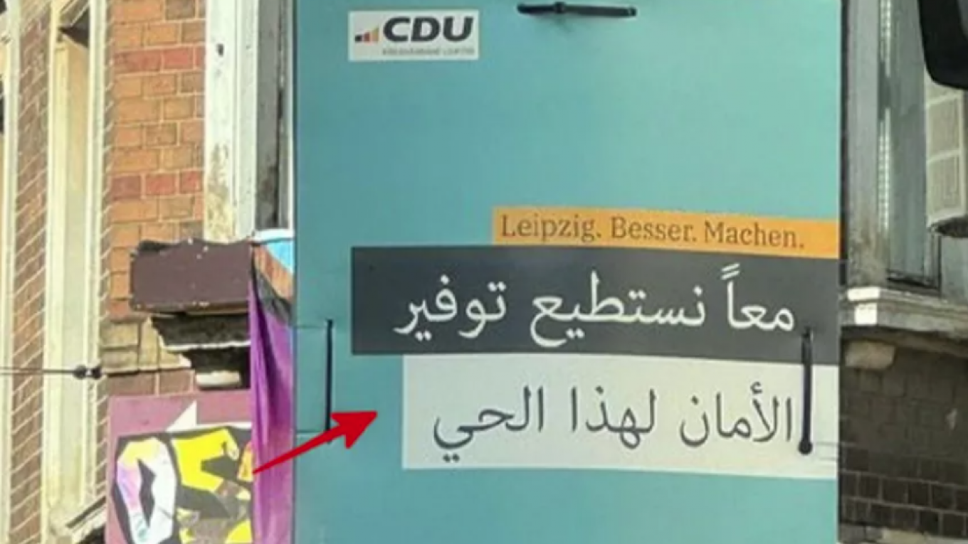 Ενόψει των ευρωεκλογών και σε μια προσπάθεια να απευθυνθεί άμεσα στους μουσουλμάνους της Γερμανίας ευαισθητοποιώντας τους για θέματα ασφάλειας, το Χριστιανοδημοκρατικό Κόμμα (CDU) ανήρτησε στην Λειψία πλακάτ με μηνύματα στην αραβική και στην τουρκική γλώσσα. Το επόμενο πρωί είχαν όλα ή καταστραφεί ή κλαπεί.