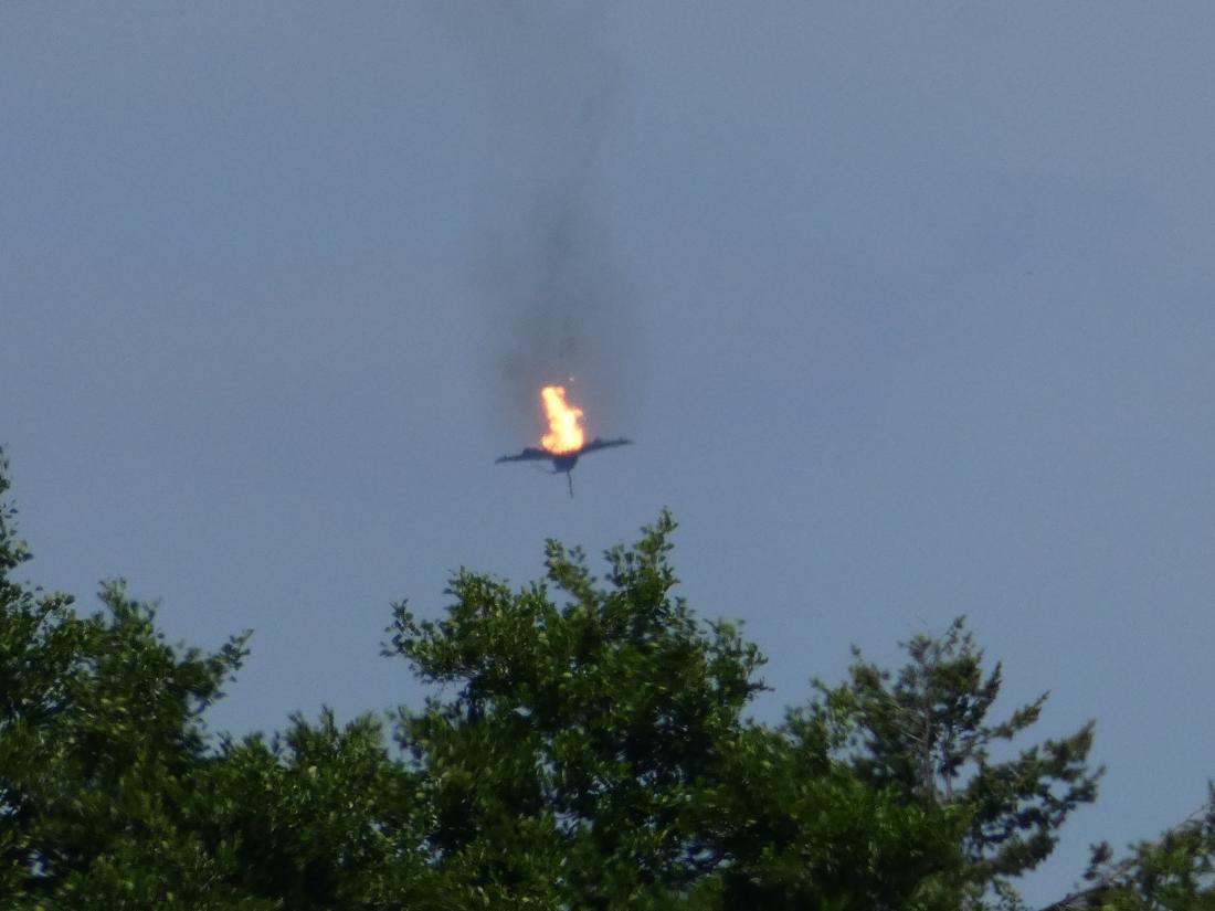 To βίντεο-ντοκουμέντο που κυκλοφόρησε στα social media, καταγράφει το ένα από τα δύο Eurofighter που συγκρούστηκαν να πέφτει φλεγόμενο στο έδαφος.