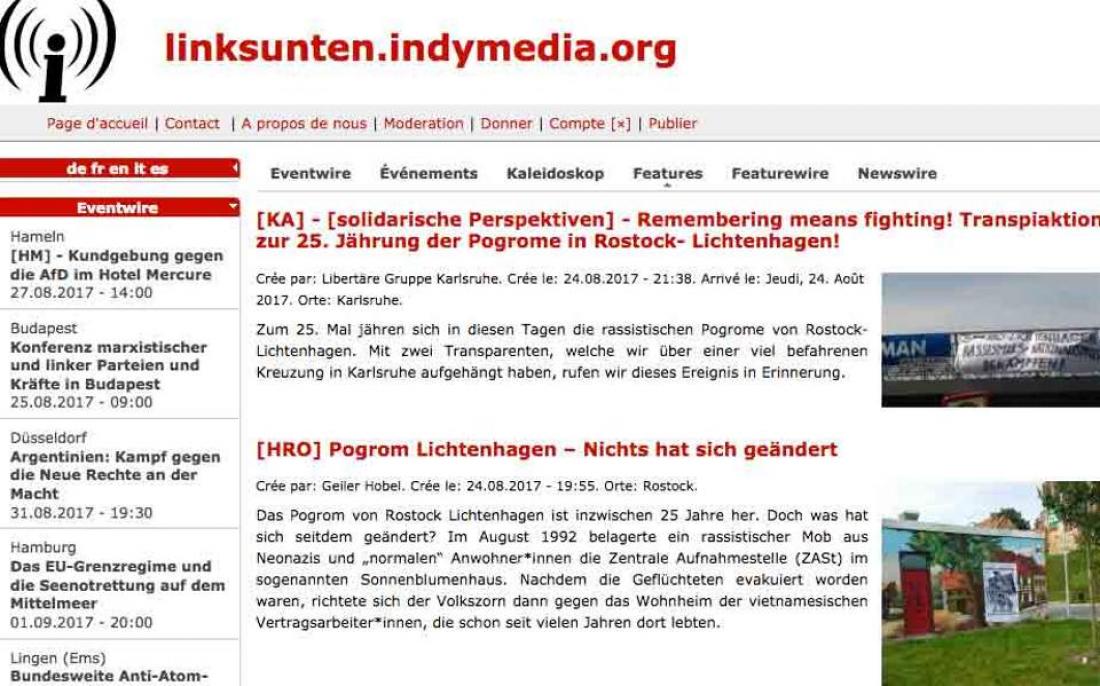 Την απαγόρευση λειτουργίας της διαδικτυακής πλατφόρμας «linksunten.indymedia.org» ανακοίνωσε πριν από λίγο το γερμανικό υπουργείο Εσωτερικών.