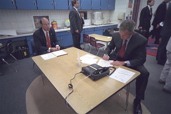 Περίπου 15 χρόνια μετά την 11η Σεπτεμβρίου, τότε που οι ΗΠΑ δέχτηκαν την χειρότερη επίθεση στο έδαφός τους, έρχονται για πρώτη φορά το φως φωτογραφίες του Τζορτζ Μπους, φωτογραφίες οι οποίες ελήφθησαν από τον προσωπικό φωτογράφο του πρώην προέδρου, Ερικ Ντρέιπερ. Καταγράφουν τις πρώτες στιγμές του τότε προέδρου των ΗΠΑ και δημοσιεύθηκαν από τον κρατικό τηλεοπτικό δίκτυο PBS.