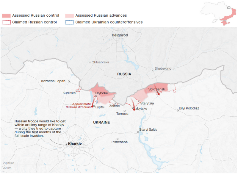 Η επίθεση επιτρέπει επίσης στη Ρωσία να εκτρέψει τους ήδη περιορισμένους ουκρανικούς πόρους μακριά από άλλες γραμμές του μετώπου και να δημιουργήσει μια ζώνη ασφαλείας από τις ουκρανικές επιθέσεις σε ρωσικές συνοριακές περιοχές. Η κοντινή ρωσική πόλη Μπέλγκοροντ, για παράδειγμα, δέχεται ολοένα και περισσότερες επιθέσεις από την Ουκρανία τους τελευταίους μήνες.