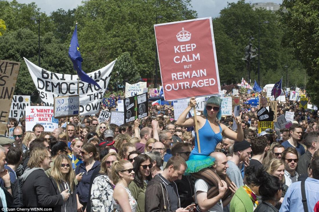 Χιλιάδες διαδηλωτές συγκεντρώθηκαν σήμερα στο κεντρικό Λονδίνο, προκειμένου να διαμαρτυρηθούν κατά του αποτελέσματος του δημοψηφίσματος της 23ης Ιουνίου, για την αποχώρηση της Βρετανίας από την ΕΕ.