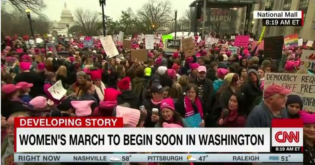 Φορώντας ροζ σκουφάκια, χιλιάδες άνθρωποι –στη συντριπτική πλειονότητά τους γυναίκες– συρρέουν από το πρωί στο κέντρο της Ουάσινγκτον για να διαδηλώσουν κατά του νέου προέδρου των ΗΠΑ Ντόναλντ Τραμπ, μία ημέρα μετά την ορκωμοσία του.