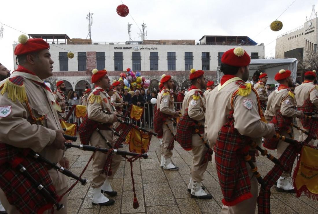 Παλαιστίνιοι και χριστιανοί από κάθε γωνιά του πλανήτη συγκεντρώνονται στην πλατεία της Φάτνης, κοντά στη Βασιλική της Γεννήσεως, στο σημείο όπου σύμφωνα με την παράδοση γεννήθηκε ο Χριστός.