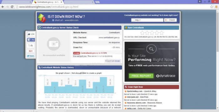 Η επίθεση DDoS έγινε χθες το βράδυ και η ιστοσελίδα της Τράπεζας (centralbank.gov.cy) αναγκάστηκε να μείνει offline. Δεν είναι σαφές για πόσο έμεινε κάτω αλλά στο screenshot που κοινοποίησαν οι ίδιοι οι hackers φαίνεται ότι ήταν ήδη για 35 λεπτά.