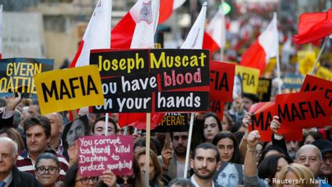 "Μαφία, μαφία" και "φονιάδες, φονιάδες" φωνάζουν εδώ και μέρες εξαγριωμένοι πολίτες στη Μάλτα.