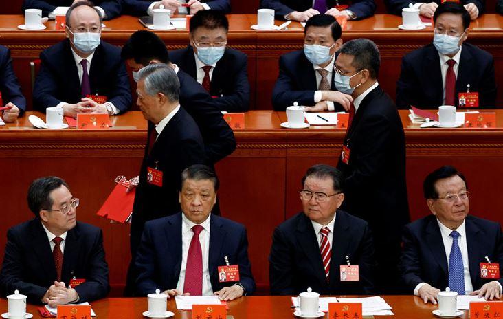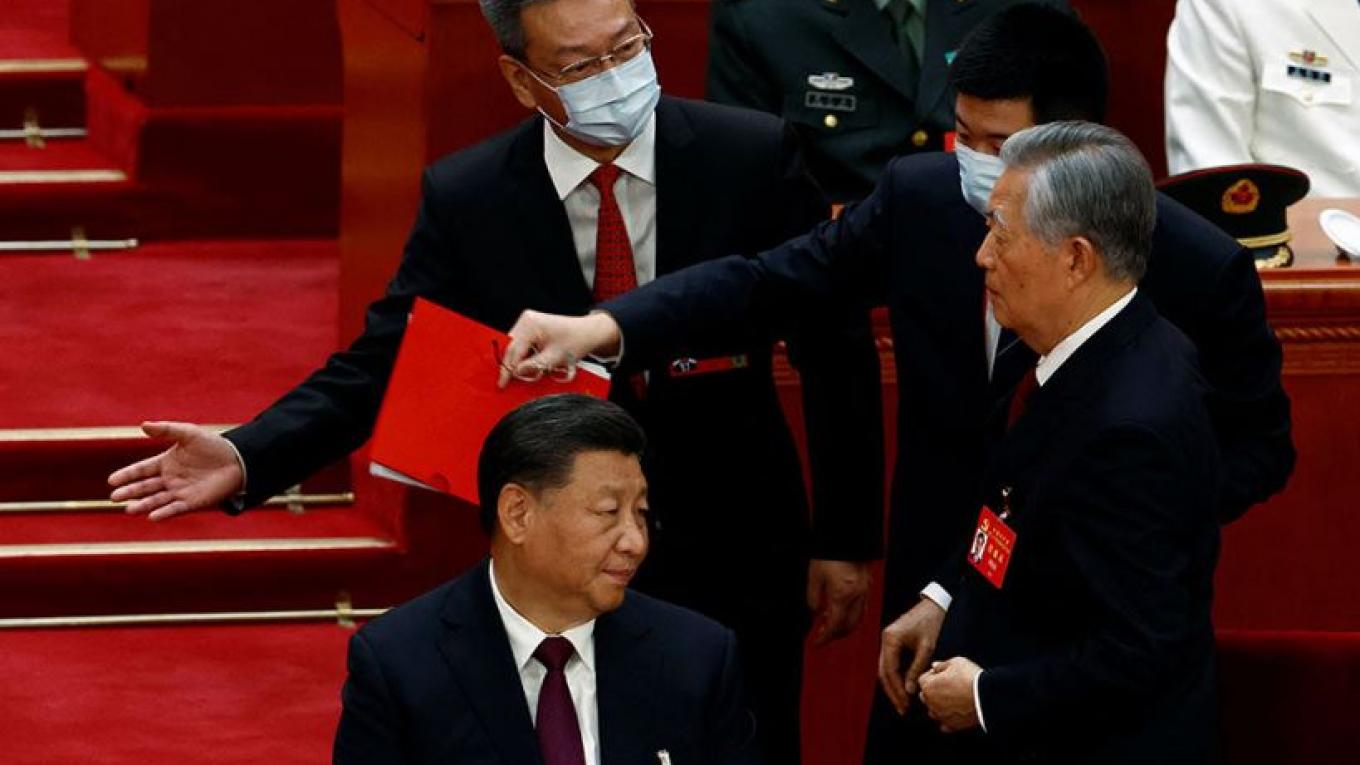 Ωστόσο, εντύπωση προκάλεσε μια ασυνήθιστη σκηνή στην προσεκτικά χορογραφημένη τελετή: ο πρώην πρόεδρος Χου Τζιντάο οδηγήθηκε συνοδευόμενος στην έξοδο, εμφανώς παρά τη θέλησή του.