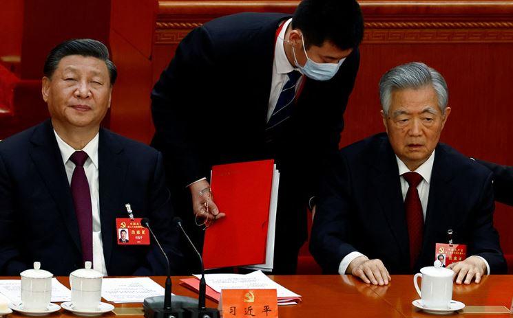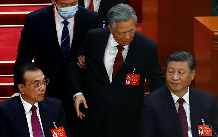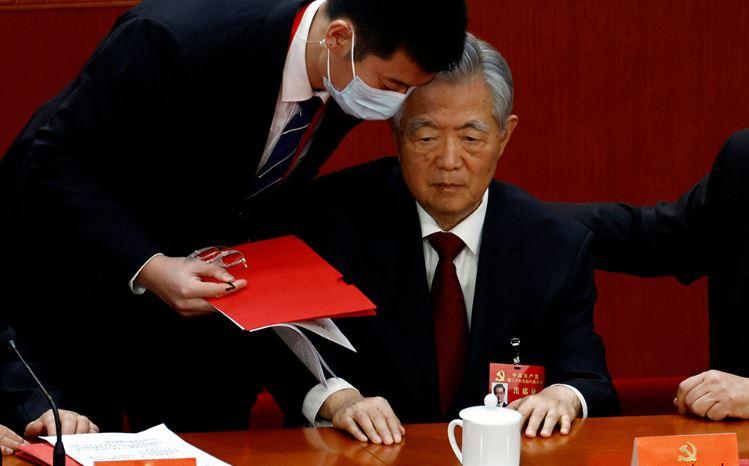 Ο 79χρονος πρώην πρόεδρος (2003-2013) κλήθηκε από υπαλλήλους να σηκωθεί από τη θέση του, πλάι σε αυτή του Σι Τζινπίνγκ. Η σκηνή ούτε εξηγήθηκε, ούτε μεταδόθηκε από τα κρατικά ΜΜΕ.