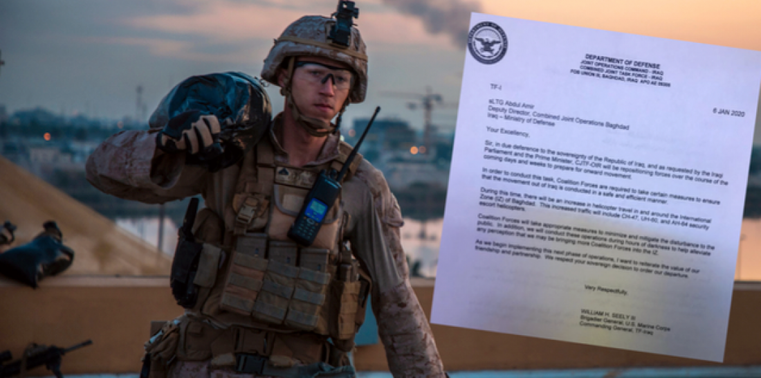 "Ουδεμία απόφαση έχει ληφθεί για να φύγουμε από το Ιράκ. Τελεία", δήλωσε ο υπουργός Άμυνας στους δημοσιογράφους. "Αυτή η επιστολή δεν αντιστοιχεί στο πνεύμα που μας διακατέχει σήμερα".