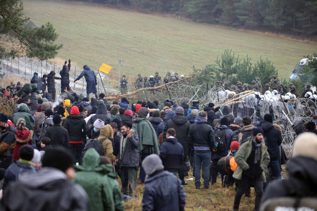 Η Λιθουανία, που αντιμετωπίζει ανάλογο κίνδυνο, κήρυξε την Τρίτη τη χώρα σε κατάσταση έκτακτης ανάγκης. Οι σκηνές αυτές αποτυπώνουν την κλιμάκωση μιας κρίσης που άρχισε το καλοκαίρι. Χιλιάδες πρόσφυγες πέρασαν στη Γερμανία, αλλά πολλοί από αυτούς απωθήθηκαν πίσω στη Λευκορωσία. Πολλοί πέθαναν από το κρύο στα δάση που βρίσκονται στα σύνορα της Λευκορωσίας με την Πολωνία.