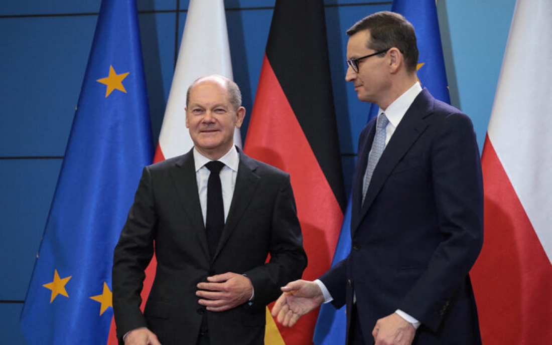 Ο πρωθυπουργός της Πολωνίας, ο Ματέους Μοραβιέτσκι, με την ευκαιρία της πρόσφατης επίσημης επίσκεψης του γερμανού καγκελάριου Όλαφ Σολτς στη χώρα του, εξέφρασε επίσης την εναντίωση της πολωνικής κυβέρνησης στο «ουτοπικό και γι’ αυτό επικίνδυνο» όραμα του Βερολίνου για την ΕΕ. Και αυτός χρησιμοποίησε συναισθηματικά φορτισμένους όρους, που παρέπεμπαν στο τρίτο Ράιχ, επιμένοντας στο ότι Βαρσοβία συνεχίζει να τάσσεται υπέρ της «Ευρώπης των ανεξάρτητων κρατών».