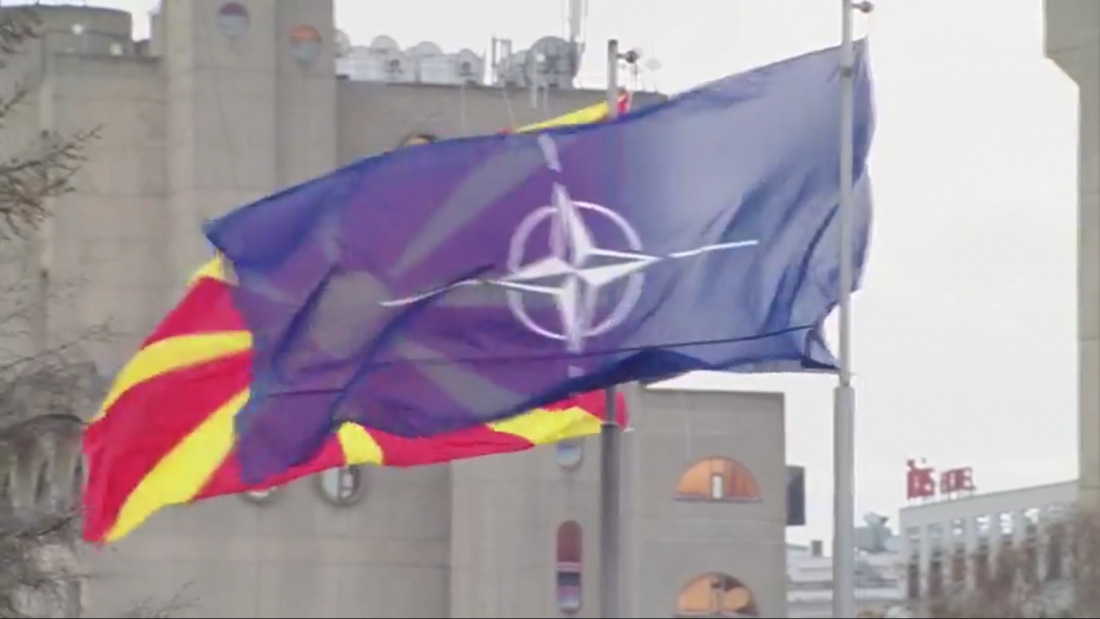 Ολοκληρώθηκε η τελετή έπαρσης, παρουσία του πρωθυπουργού Ζόραν Ζάεφ, και η σημαία του ΝΑΤΟ κυματίζει πλέον δίπλα στη σημαία της Βόρειας Μακεδονίας, έξω από την έδρα της κυβέρνησης των Σκοπίων.