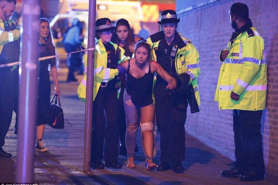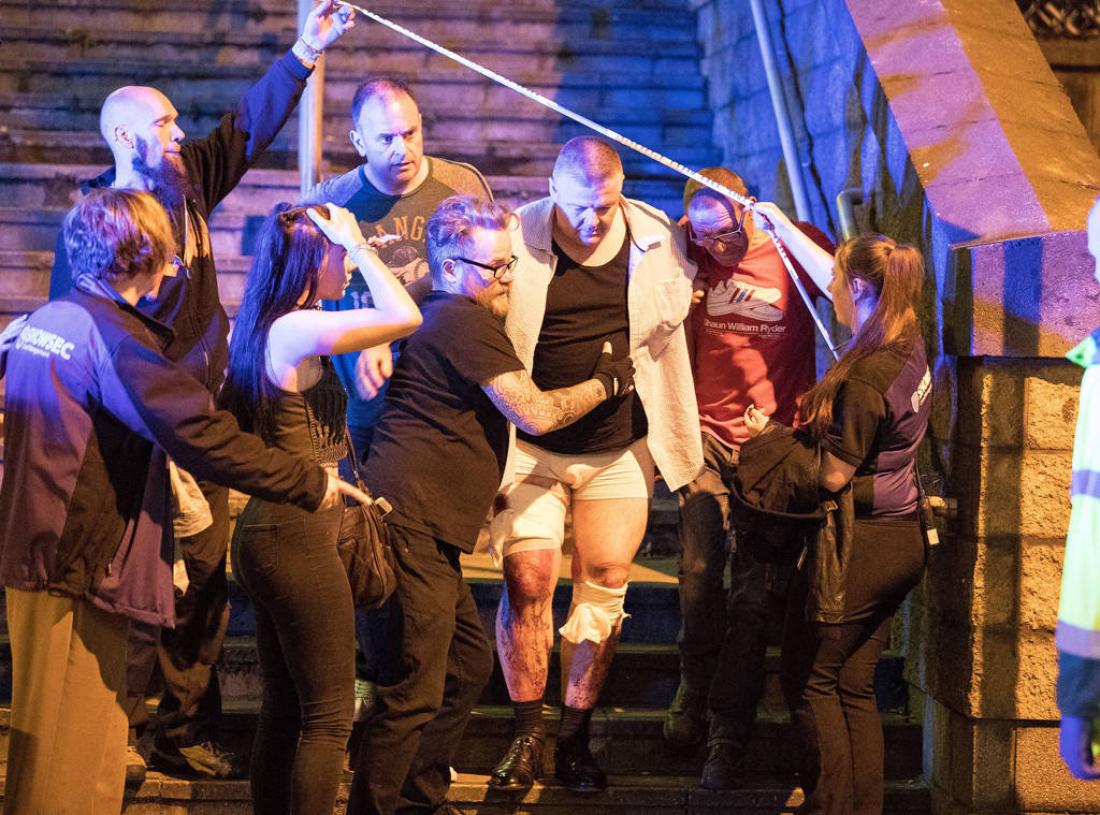 Μία μάρτυρας ο οποίος παρακολούθησε τη συναυλία είπε ότι ένιωσε μια τεράστια έκρηξη ενώ έφευγε από το στάδιο, που ακολούθησαν ουρλιαχτά και ποδοβολητό από χιλιάδες άτομα εν φυγή από το κτίριο. Σε βίντεο που αναρτήθηκε στο Twitter φαίνονται θεατές, μεταξύ των πολλοί νέοι, να τρέχουν προς τα έξω.