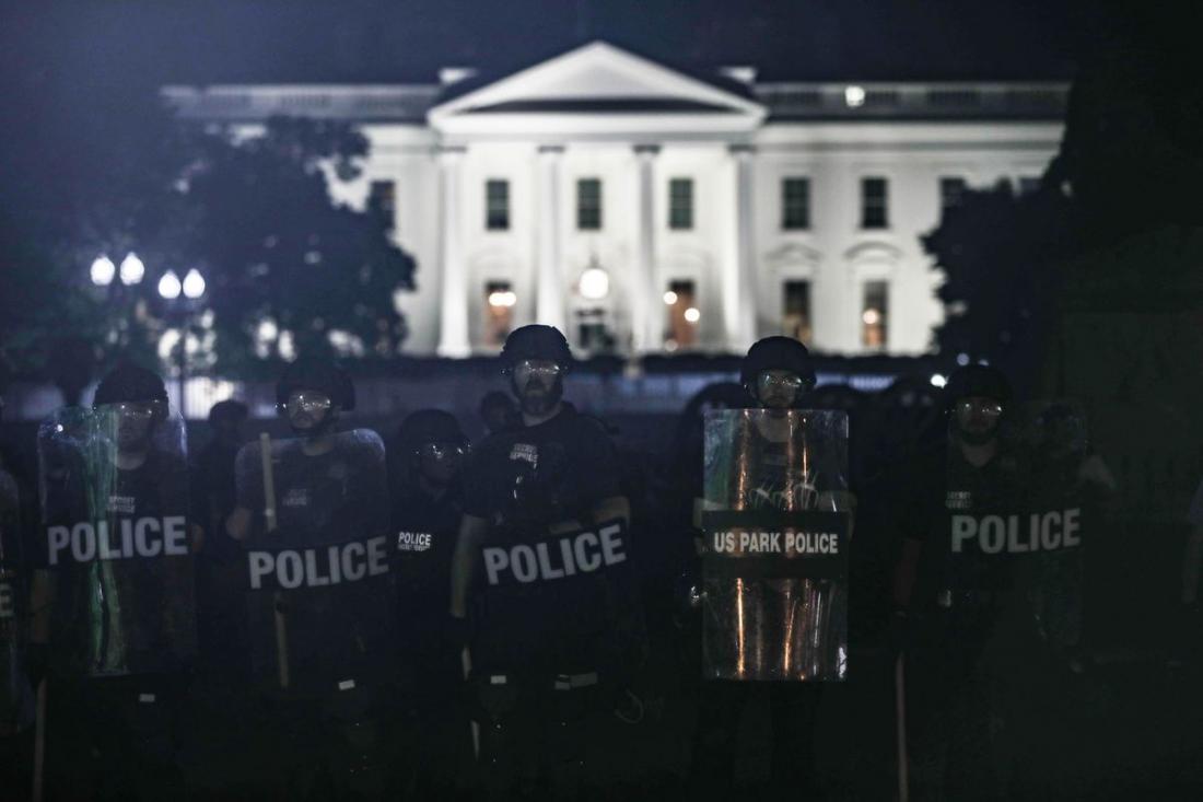 Αστυνομικοί, αρκετοί έφιπποι, έκαναν κατόπιν έφοδο για να απωθήσουν τους κυρίως ειρηνικούς διαδηλωτές. Μετά το τέλος του διαγγέλματός του, ο Τραμπ περπάτησε ως την εμβληματική αγγλικανική εκκλησία του Αγίου Ιωάννη, στο Πάρκο Λαφαγιέτ, ένα τετράγωνο από τον Λευκό Οίκο - το κτίριο υπέστη φθορές στα επεισόδια της προηγουμένης - με ελικόπτερα να πετούν από πάνω και δεκάδες στελέχη της προεδρικής ασφάλειας να τον πλαισιώνουν.