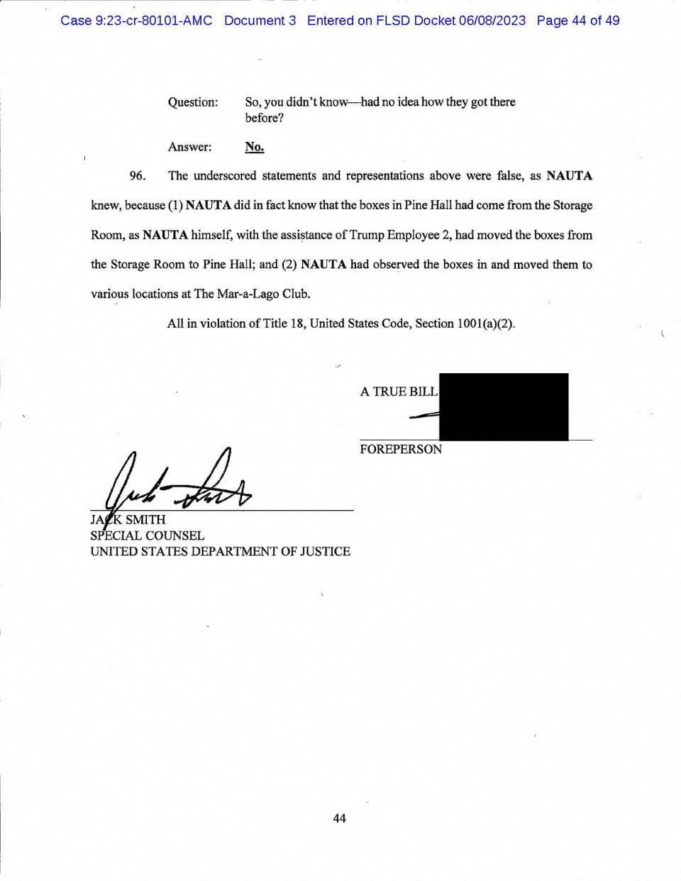 Το κατηγορητήριο αναφέρει επίσης ότι ο Τραμπ έδωσε εντολή στον βοηθό του, Γουόλτ Ναούτα, να μετακινήσουν κουτιά με αρχεία για να τα κρύψουν από τον δικηγόρο του και το FBI.