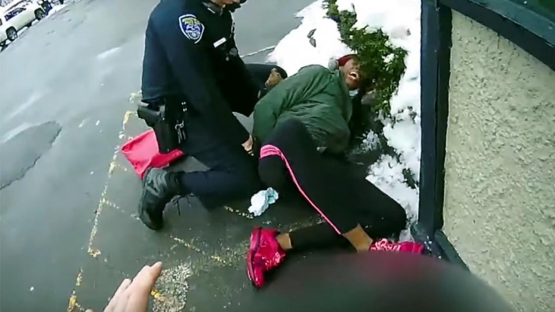 Η γυναίκα καταφέρνει να σηκωθεί και τότε ένας αστυνομικός της ρίχνει σπρέι πιπεριού, πριν αυτή καταρρεύσει. Μακριά από τη μαμά της, η τρίχρονη κόρη της φωνάζει για αρκετά λεπτά και σταματά όταν οι αστυνομικοί τις φέρνουν ξανά μαζί.