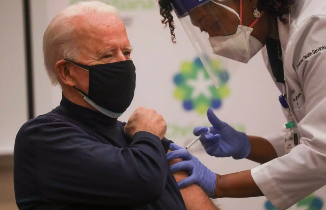 Ο εκλεγμένος πρόεδρος των ΗΠΑ Τζο Μπάιντεν, 78 ετών, εμβολιάστηκε σήμερα για την Covid-19, μπροστά στις τηλεοπτικές κάμερες, λαμβάνοντας την πρώτη δόση του εμβολίου των Pfizer/BioNTech σε νοσοκομείο του Νιούαρκ, στο Ντέλαγουερ.