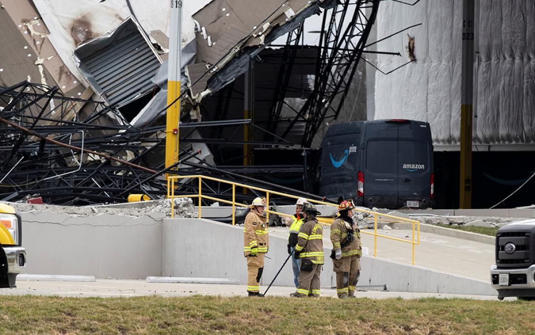 Τουλάχιστον δύο εργαζόμενοι έχουν χάσει τη ζωή τους από την κατάρρευση μέρους της οροφής μιας αποθήκης της Amazon κοντά στο Σεν Λούις,, αφού ανεμοστρόβιλοι και ισχυρές βροχοπτώσεις έπληξαν την περιοχή, ανακοίνωσαν οι τοπικές αρχές.