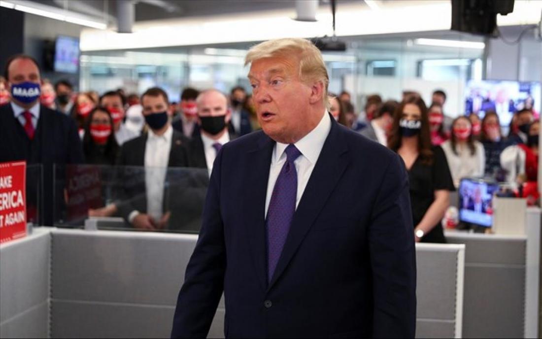 Ο Τραμπ και πολλοί από τους εργαζόμενους στην εκστρατεία του δεν φόραγαν μάσκες.