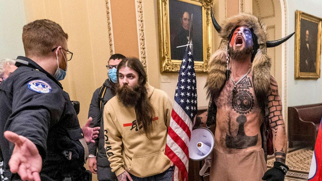 Μία από τις χαρακτηριστικές μορφές της εισβολής ήταν ο κερασφόρος Jacob Angeli Chansley, γνωστός ως Jake Angeli,ο οποίος αποφυλακίστηκε σήμερα. Είχε προκαλέσει τεράστια εντύπωση την ημέρα της εισβολής στο Καπιτώλιο αφού φορούσε γούνινο καπέλο με κέρατα και είχε βάψει το πρόσωπό του. Για την εμφάνισή του αυτή είχε λάβει και το παρατσούκλι QAnon Shaman. Ο ίδιος μάλιστα είχε παραδεχτεί την ενοχή του στην δίκη για παρεμπόδιση μιας επίσημης διαδικασίας.