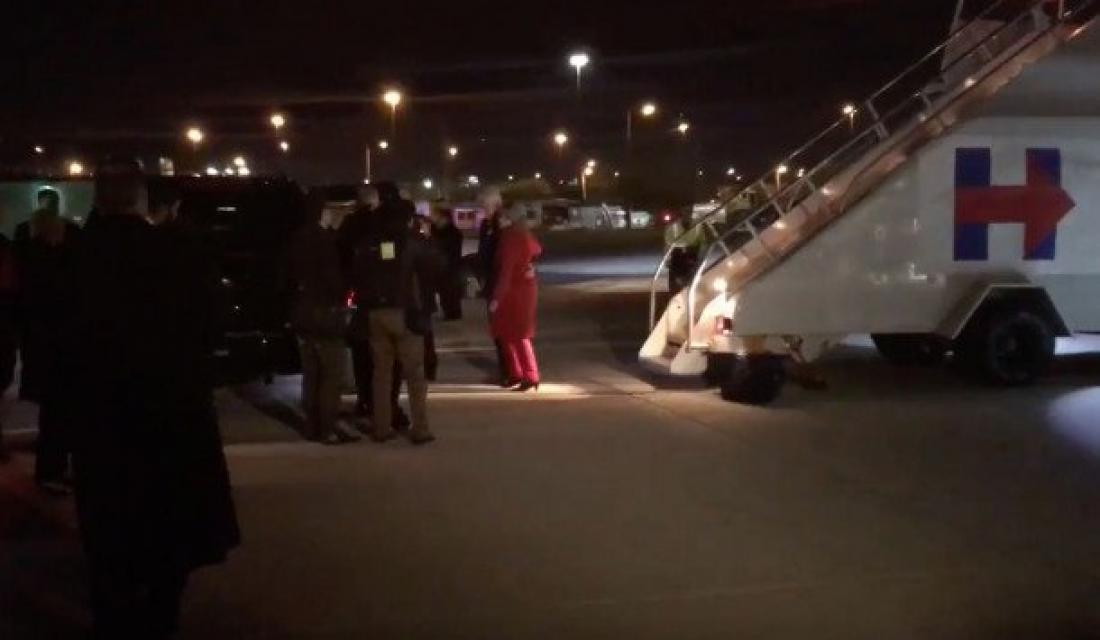 Ο Μπιλ Κλίντον την βοηθάει να περπατήσει από τη σκάλα του αεροπλάνου εως το αυτοκίνητο που τυν μετέφερε σε προεκλογική συγκέντρωση, στη Φιλαδέλφεια.