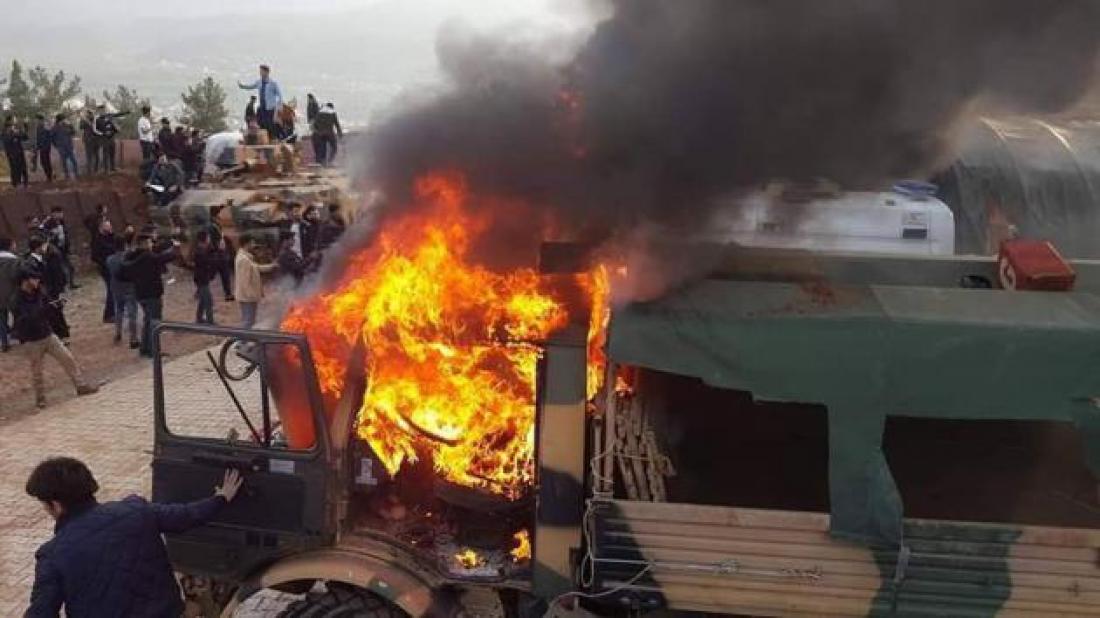 محتجون مدنيون يهاجمون قاعدة عسكرية للجيش التركي شرق محافظة .