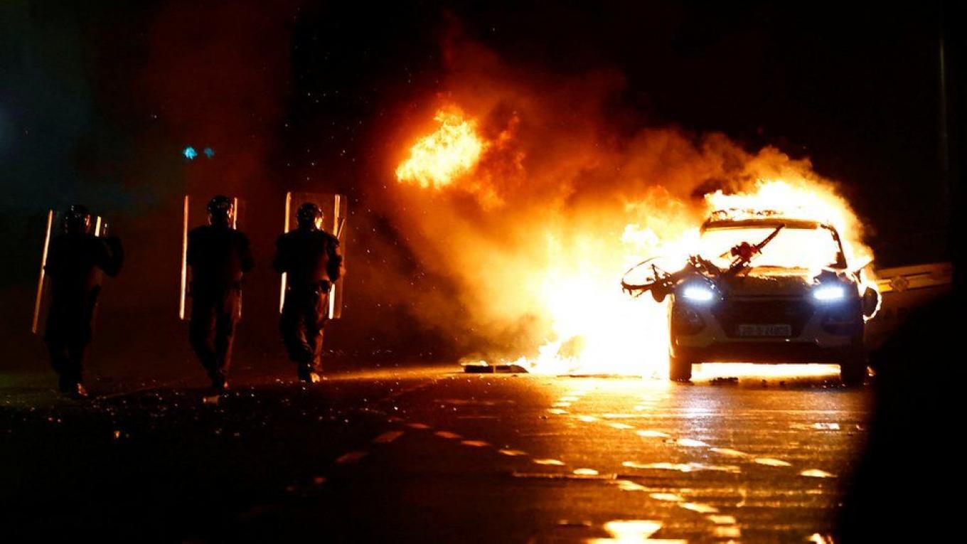 Επεισόδια ξέσπασαν, σύμφωνα με έναν δημοσιογράφο του Γαλλικού Πρακτορείου, αργά το βράδυ της Πέμπτης στο Δουβλίνο και ένα περιπολικό της αστυνομίας πυρπολήθηκε κοντά στο σημείο της επίθεσης με μαχαίρι το απόγευμα.
