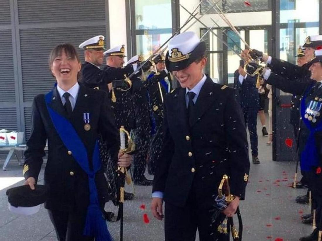 Η φωτογραφία που αναρτήθηκε χθες στο Facebook δείχνει δύο κοπέλες με την επίσημη στολή του Πολεμικού Ναυτικού περιστοιχισμένες από τους συναδέλφους τους: «Αγαπιούνται και επικύρωσαν το όνειρό τους», σχολιάζει η λεζάντα που ανακοινώνει την ένωση της πλωτάρχη Ρόζα Μαρία Μογκαβέρο και της υποπλοιάρχου Λορέλα Τσίπρο που ενώθηκαν στη βάση της Λα Σπέτσια, όπου σταθμεύουν.