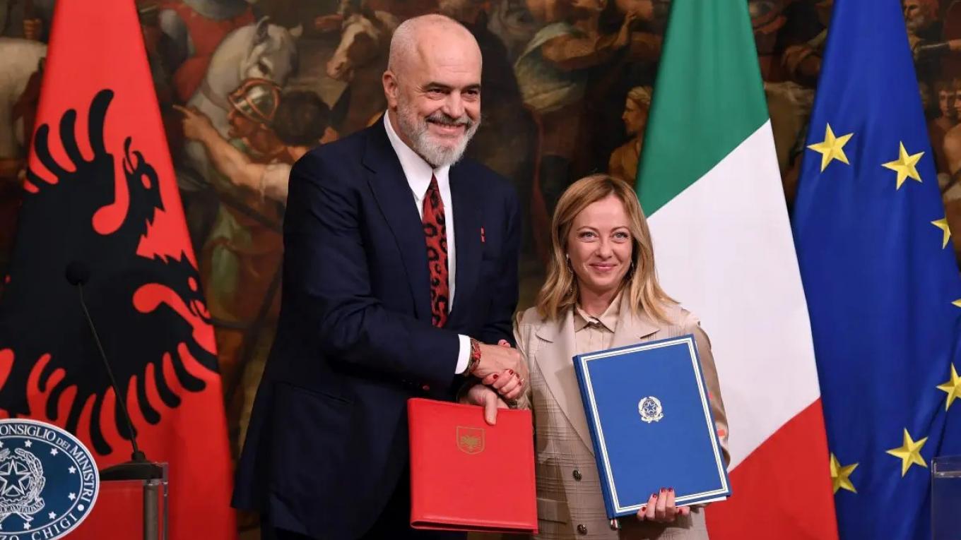 Η Ιταλίδα πρωθυπουργός Τζόρτζια Μελόνι συναντήθηκε σήμερα το απόγευμα στη Ρώμη με τον Αλβανό ομόλογό της, Έντι Ράμα, με τον οποίο υπέγραψε πρωτόκολλο για την ενίσχυση της συνεργασίας σε θέματα μετανάστευσης.