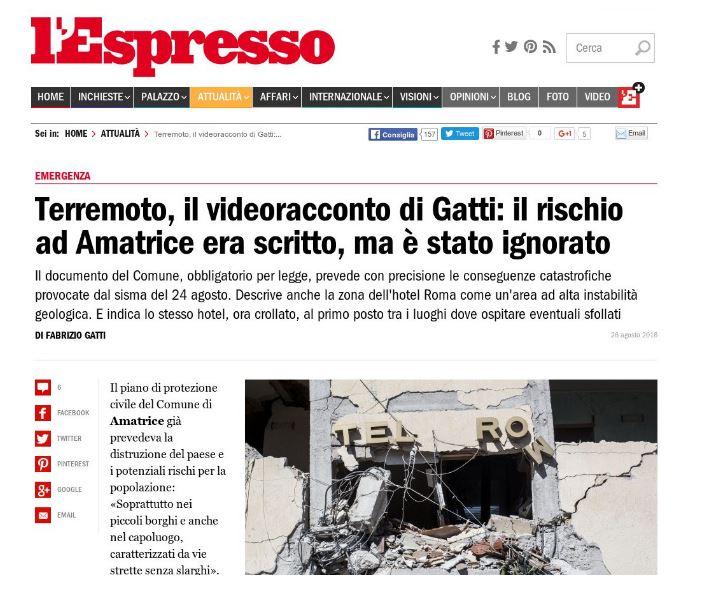 Το ιταλικό περιοδικό "L'Espresso" ρίχνει τις ευθύνες στη δημοτική αρχή του Αματρίτσε, του χωριού που ισοπεδώθηκε από τον σεισμό της 24ης Αυγούστου, όπου έχασαν τη ζωή τους 278 άνθρωποι.