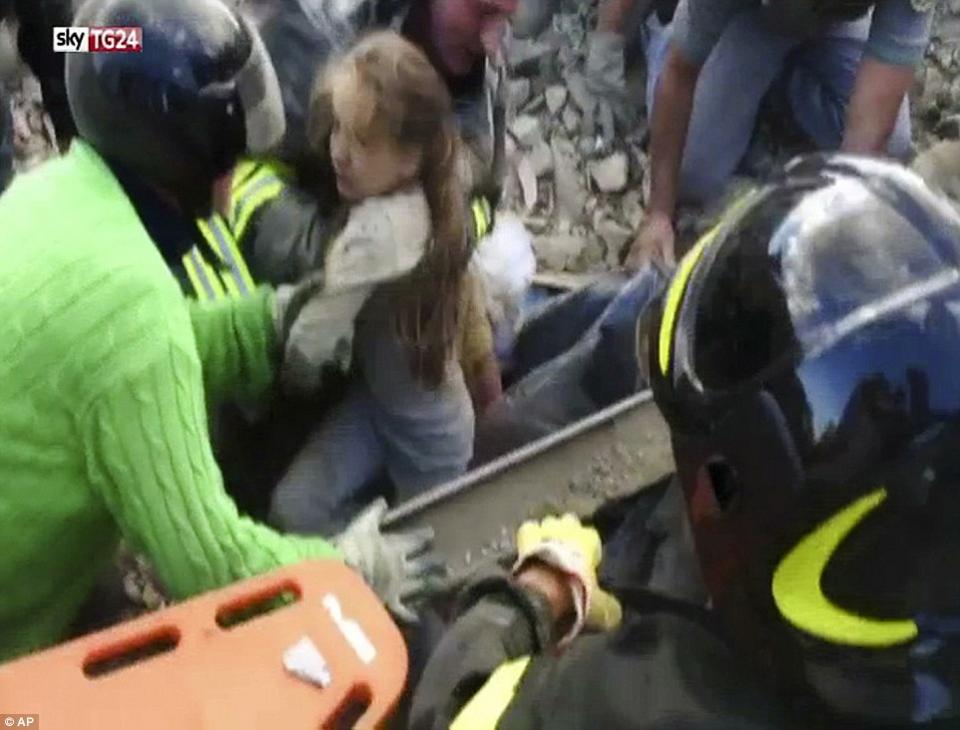 Η δραματική στιγμή της διάσωσης ενός 10χρονου κοριτσιού από τα ερείπια σπιτιού στην Πεσκάρα ντελ Τρόντο, 17 ώρες μετά τον καταστροφικό σεισμό που ισοπέδωσε πόλεις και χωριά στην κεντρική Ιταλία, γέννησε ελπίδες ότι μπορεί κάτω από τα κτίρια που κατέρρευσαν να υπάρχουν επιζώντες.